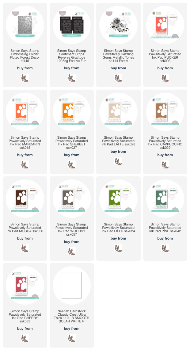 For the sentiments, I chose 3 strips from the Reverse Gratitude Sentiments. To finish off this project, I added some of the Metallic Tones Pawsitively Dazzling Gems.