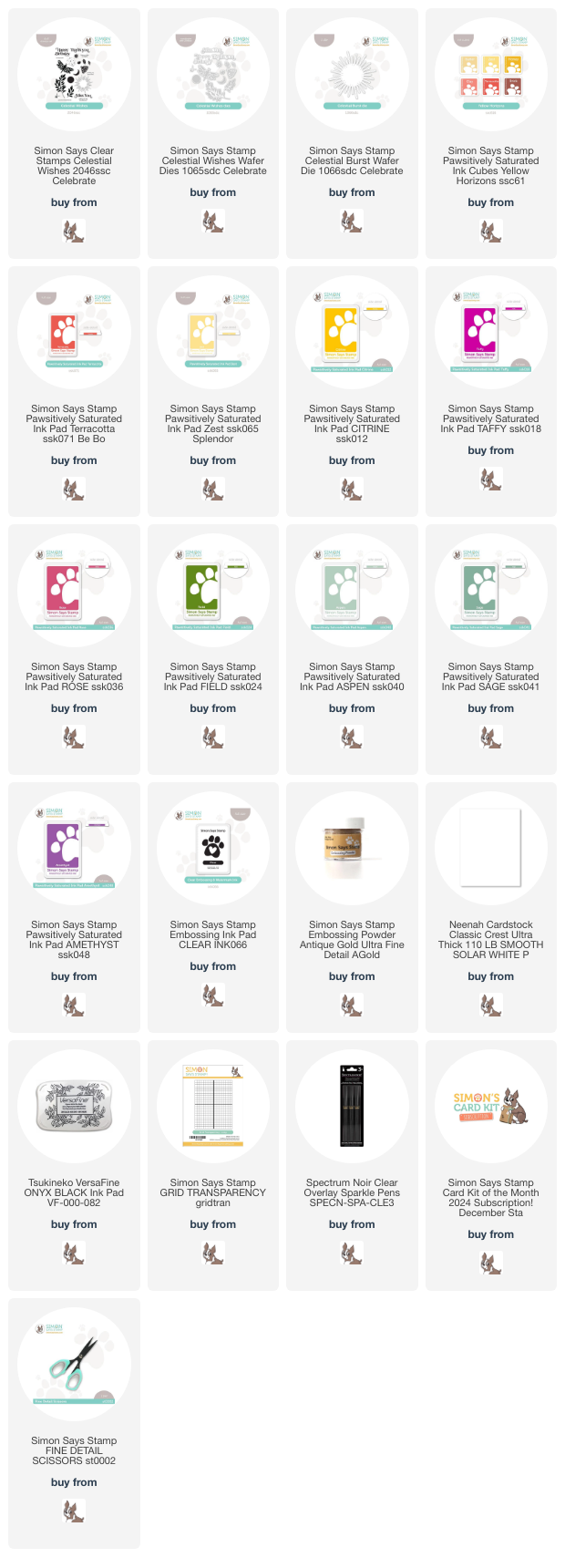Today I have a very bright and colorful birthday card using the Celestial Wishes Stamp Set by Simon Says Stamp which was part of the May 2024 Celestial Wishes Card Kit.