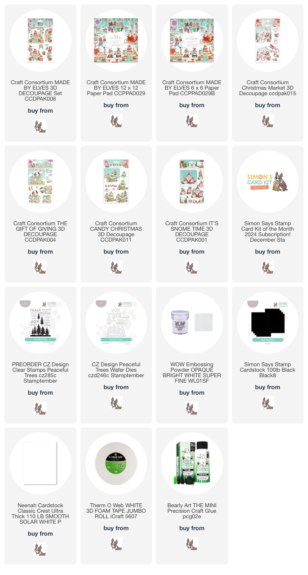 I used the Made By Elves 3D Decoupage Sheet by Craft Consortium as the main focal point for my card. I separated the different layers on this sheet and layered them over each other using some thick foam squares.