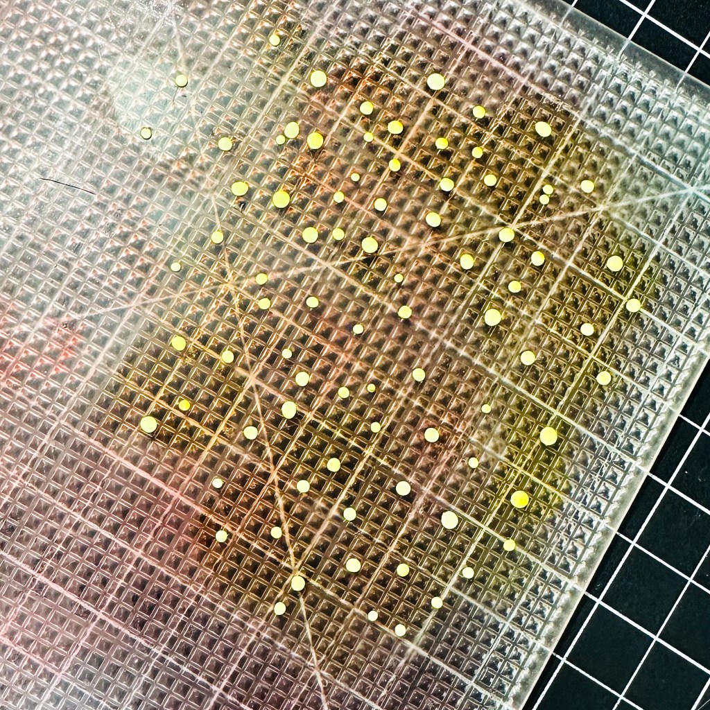 I started with the leaves. I placed them onto my Altenew Sticky Mat to make sure they are held in place while I ink blend with some beautiful greens on them.