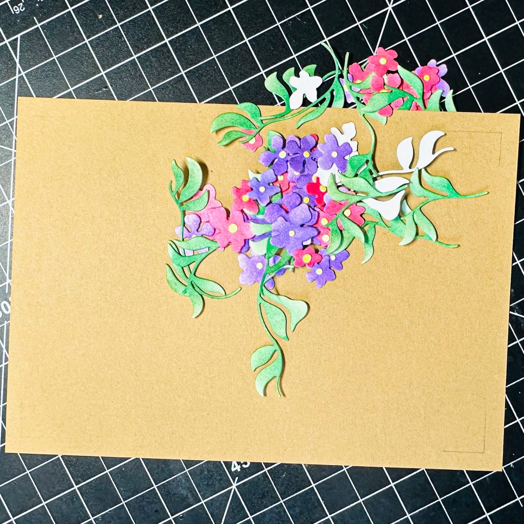 The best part about this die is that it lets you use both the positives (the little die cut flowers and leaves) and also the negatives to create a gorgeous project.