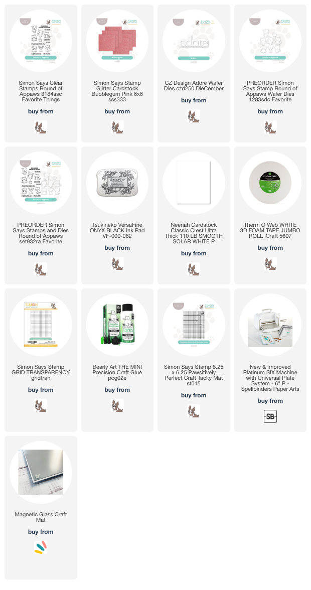 I seriously can’t get enough of the Round of Appaws Stamp Set from the latest Favorite Things Release by Simon Says Stamp. Here’s another cute and adorable card I created using this set.