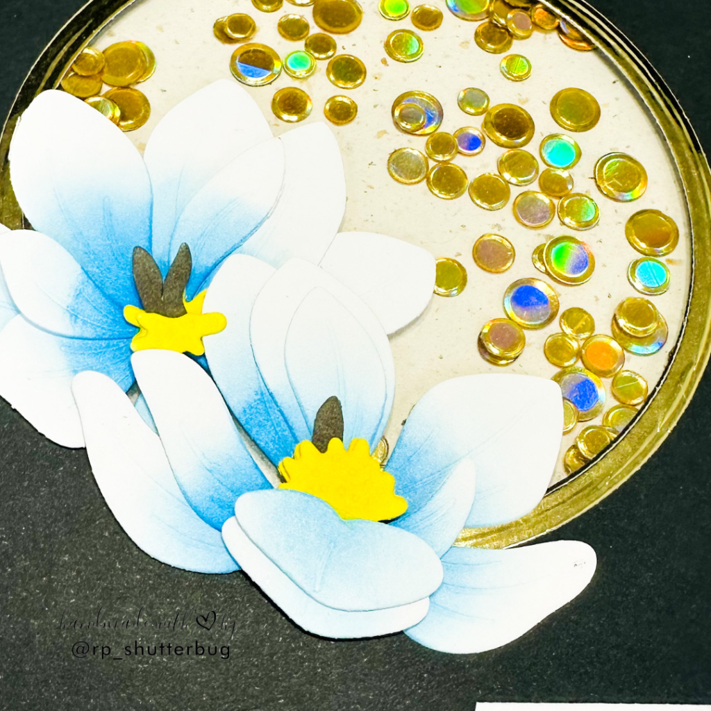 To embellish the shaker window, I die cut some gorgeous magnolia blooms using the Magnificent Magnolias die set. These floral accents added just the right touch of elegance and charm.