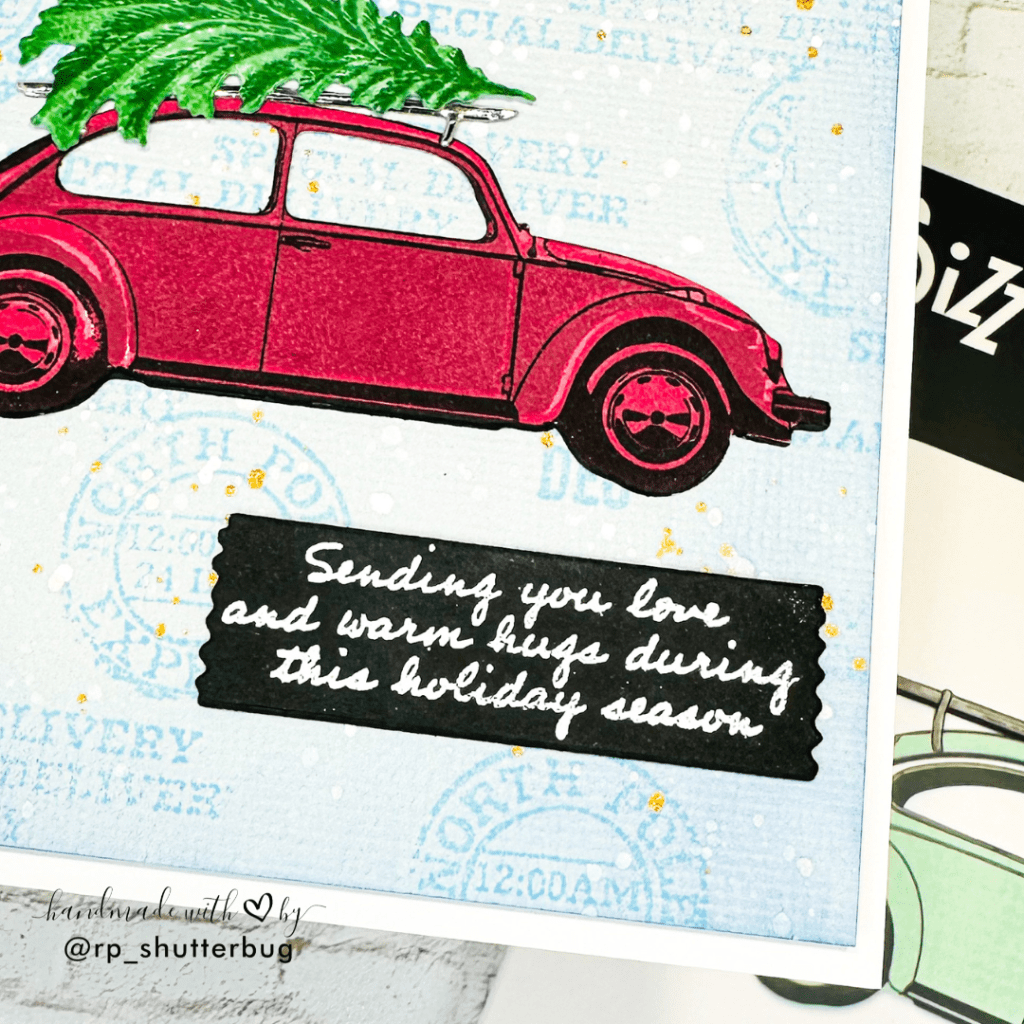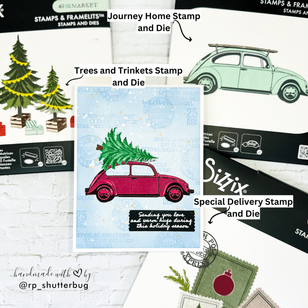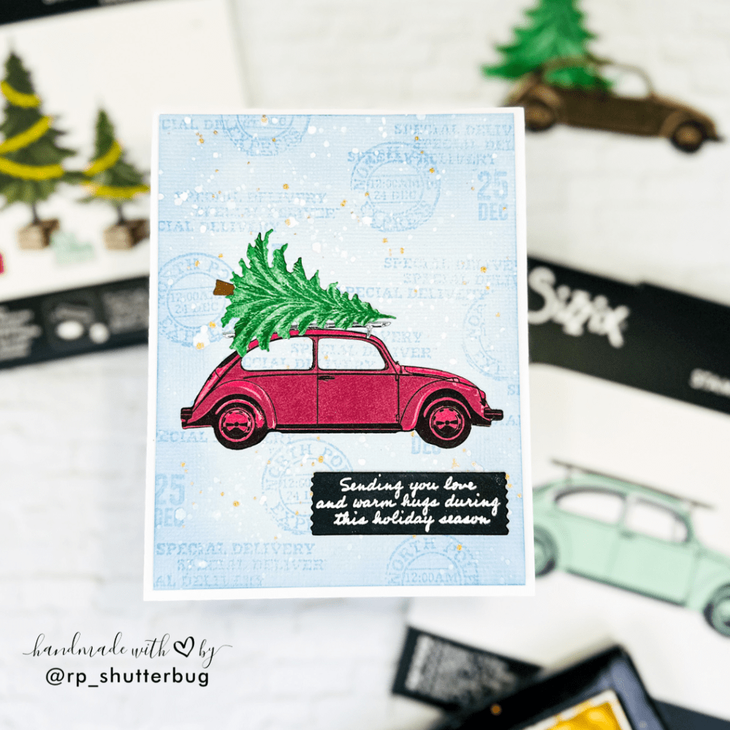 Next, I stamped and die-cut the charming little car from the Journey Home Stamp and Die Set and paired it with one of the layered Christmas trees I had already created for the first card.