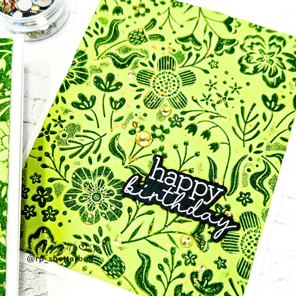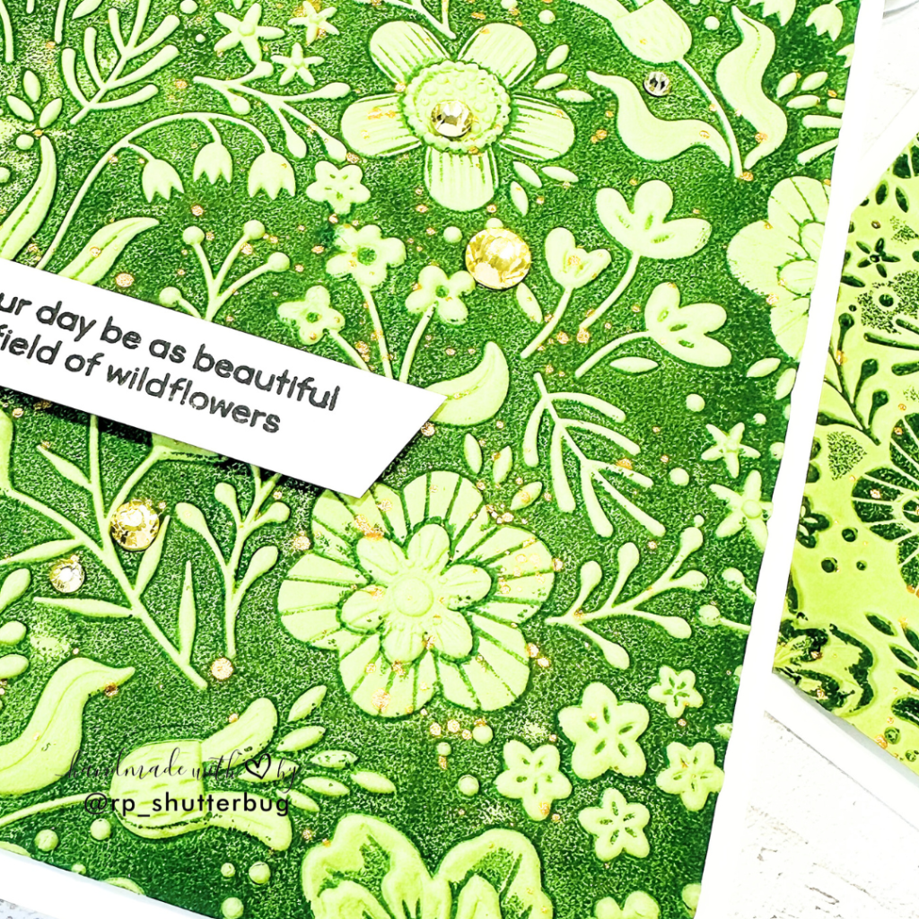 I love using this technique on embossing folders that have rich, detailed designs. Instead of swiping ink across your cardstock, you apply ink directly to the embossing folder—either on the raised embossed side or the flat debossed side—to create two completely different effects. For my first card, I used a light green cardstock with darker green ink on the raised portion of the folder. This gave a beautiful tone-on-tone effect that highlighted all the intricate details.