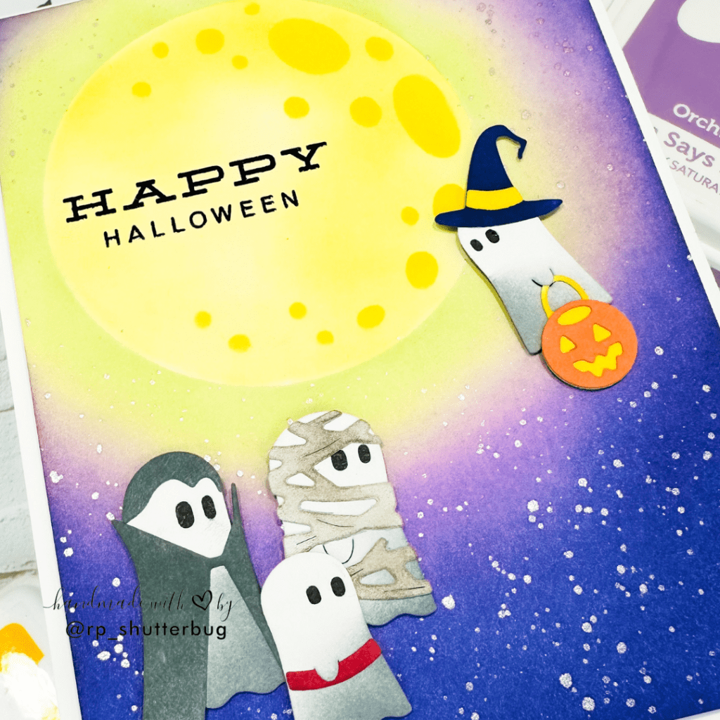 Halloween is just around the corner, and I couldn’t resist diving into some festive crafting! Today, I’m excited to share a whimsical Halloween card I created using the brand-new Costume Ghost Parade Die from the STAMPtember® collection. This charming die set features four adorable little ghosts dressed up in classic costumes—a witch, a mummy, a vampire, and a pirate—making it perfect for creating playful and spooky projects. Whether you’re crafting cards, party décor, or treat packaging, this set is sure to bring smiles.