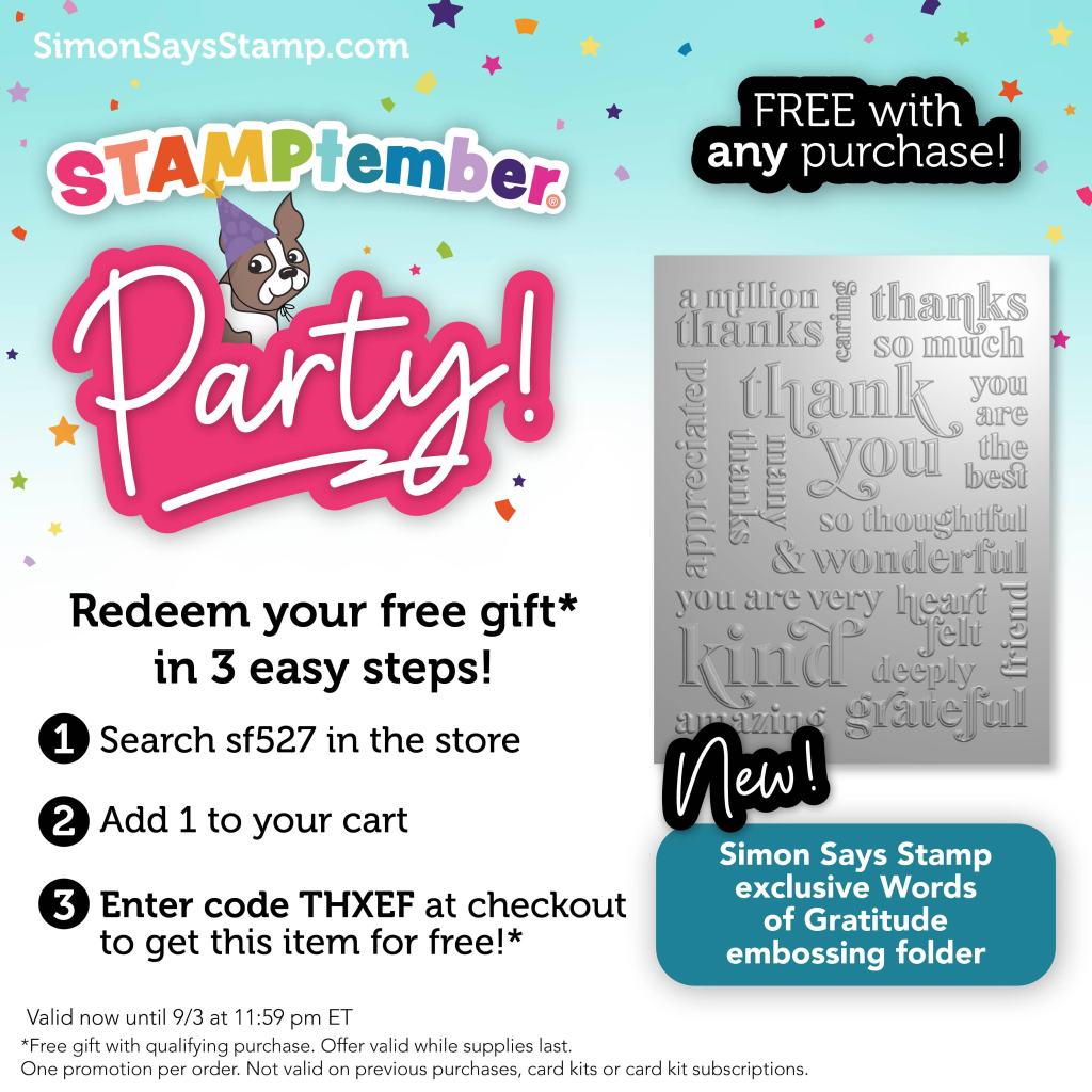 The Simon Says Stamp YouTube channel will have a lot of interesting video content for you! Many industry makers will be posting on their own blogs and social media accounts. Simon Says Stamp’s social media channels will be bubbling with excitement. Follow our Facebook, Instagram, YouTube, and Pinterest accounts. Look for the hashtag #STAMPtember2025 and #SSSStamptember and #STAMPtember to discover it all, and be sure to use the hashtags when posting projects you make with STAMPtember® products!