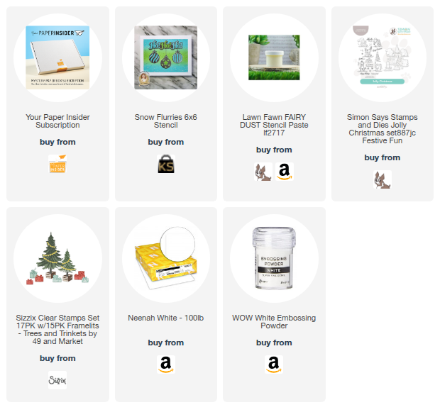 To add that touch of falling snow magic, I used the Snow Flurries Stencil and applied the Fairy Dust Glitter Stencil Paste by Lawn Fawn. This paste is pure magic — it’s sparkly, smooth, and perfect for creating those frosty details that instantly make a project feel festive and alive.