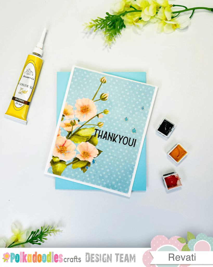 The “Thank You” sentiment comes from the Winnie Daisy Messages digi stamp set, which includes so many thoughtful messages in beautifully styled fonts. To finish the card, I added a sprinkling of sequins on each side of the sentiment and tiny gold accents at the center of each flower.