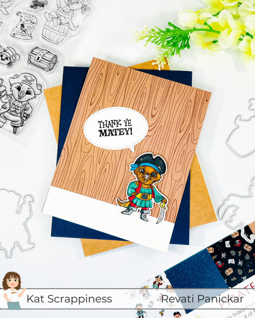 Today I’m sharing a clean and simple pirate-themed card created using the brand-new KS Pirate Quokka release. This collection includes adorable stamps, coordinating dies, playful sentiments, and gorgeous 6×6 double-sided patterned papers — everything works together beautifully!