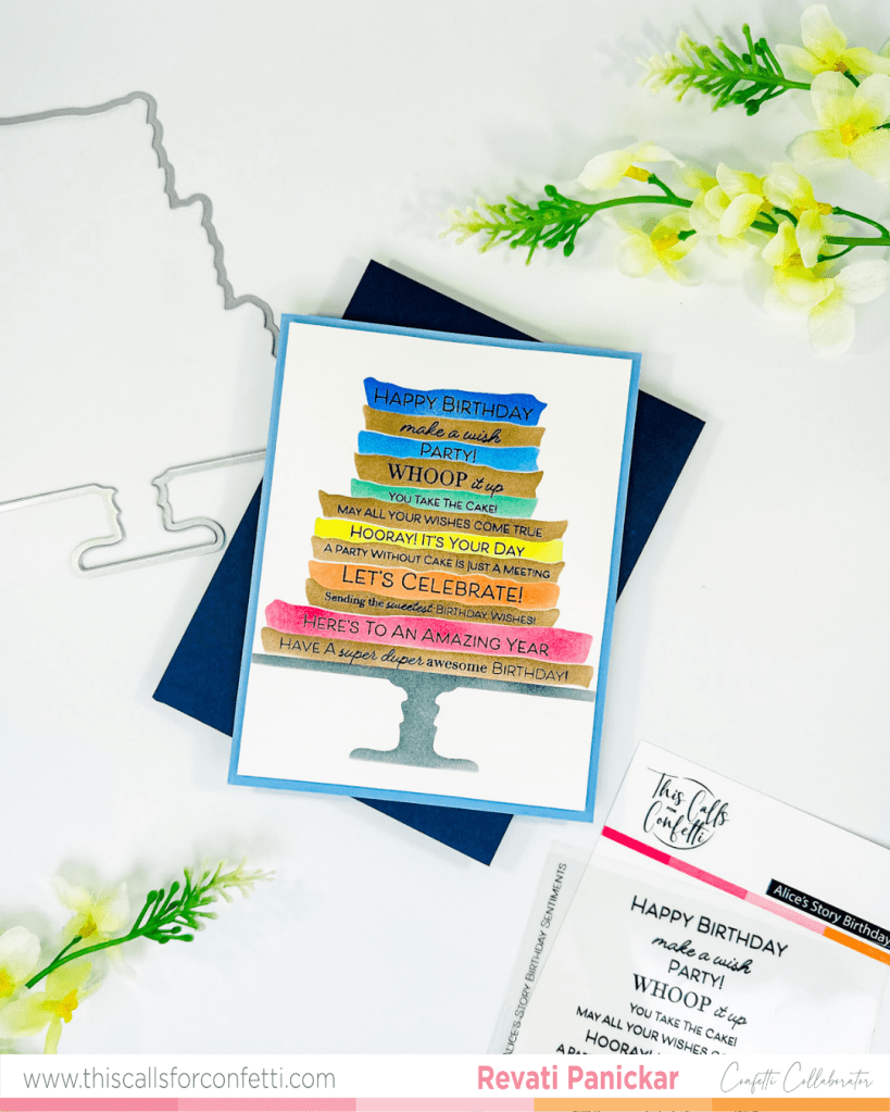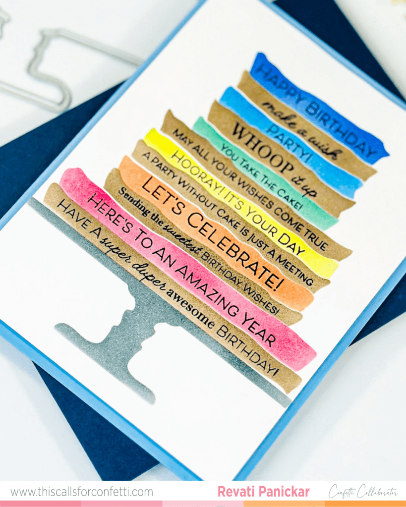 I ended up with a pile of perfect sentiment strips, which I layered over the cake to add to that fun, festive look. Having all those extra strips ready to go is going to make my future birthday card projects so much faster.
